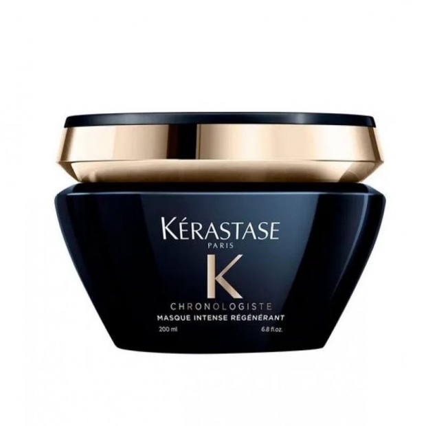 A linha Chronologiste da Kérastase foi desenvolvida para tratar cabelos que apresentam sinais de envelhecimento, ressecamento e falta de densidade. A Máscara Masque Intense Régénérant combina Ácido Hialurônico, Abyssine e Vitamina E para nutrir profundamente, proteger contra agressores externos e restaurar a fibra capilar desde a raiz, proporcionando cabelos mais fortes, macios e brilhantes.