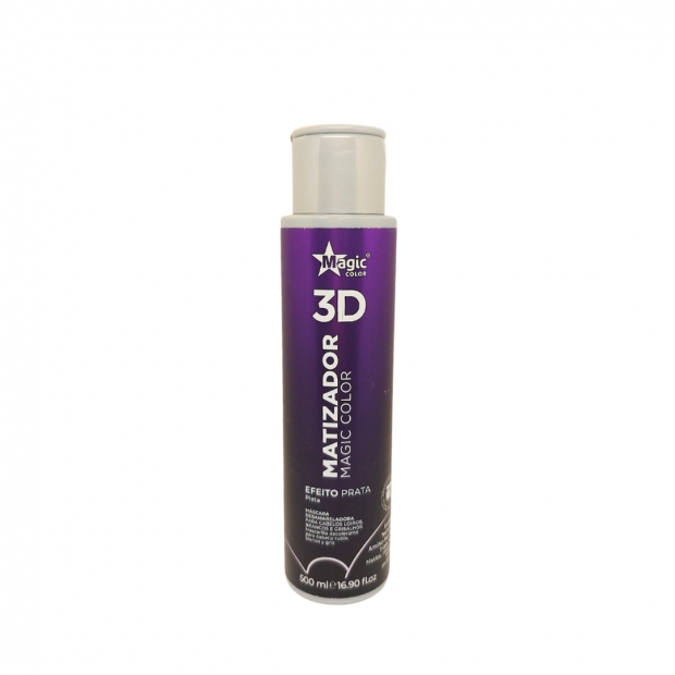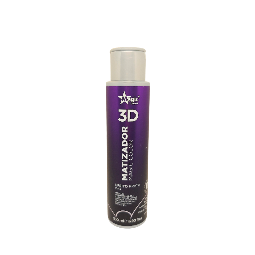 A Máscara Magic Color Matizador Efeito Prata 500ml é um tratamento capilar desenvolvido para neutralizar tons amarelados e alaranjados em cabelos loiros, grisalhos ou descoloridos. Sua fórmula com pigmentos violeta e tecnologia 3D Amino-Pro Color corrige a cor dos fios, proporcionando um efeito prata intenso e brilho luminoso.