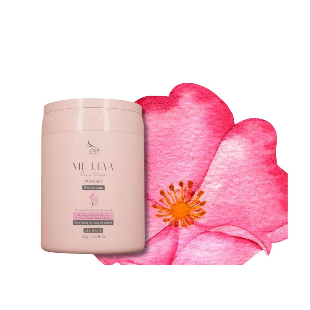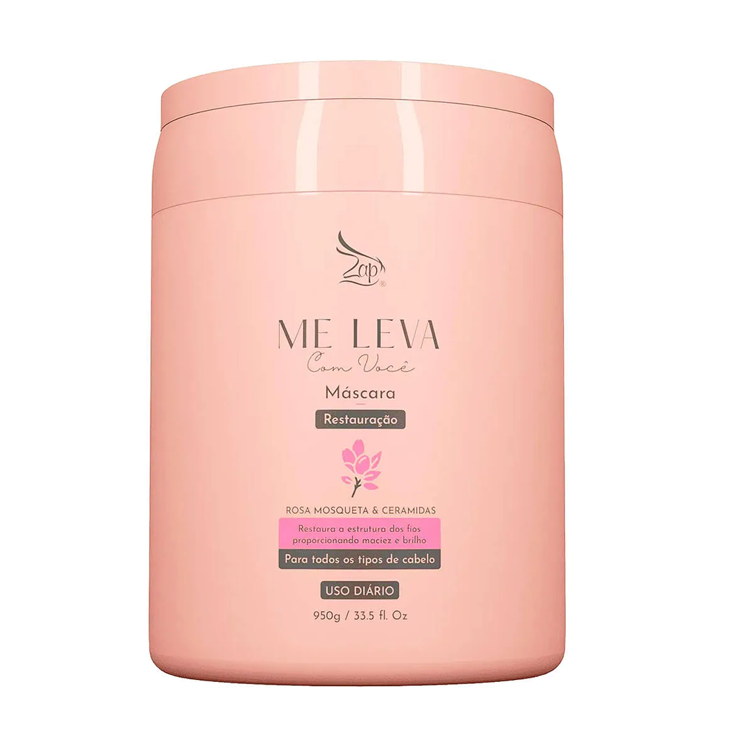 A Máscara Zap Me Leva Rosa Mosqueta & Ceramidas 950g é um tratamento nutritivo e reparador desenvolvido para restaurar a vitalidade dos cabelos secos e danificados. Sua fórmula rica em óleos naturais e ceramidas proporciona hidratação intensa, maciez imediata e brilho radiante, deixando os fios suaves e saudáveis desde a primeira aplicação.