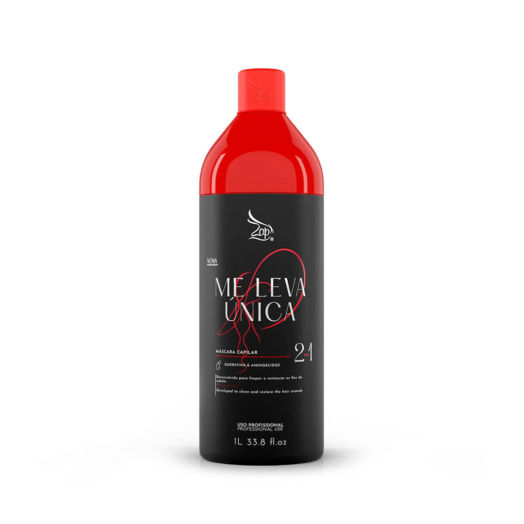 A linha Me Leva Única da Zap Cosméticos foi desenvolvida para uso profissional garantindo resultados imediatos de salão em um único tratamento O produto combina queratina e agentes reconstrutores que alinham e disciplinam os fios proporcionando nutrição profunda e efeito de brilho espelhado