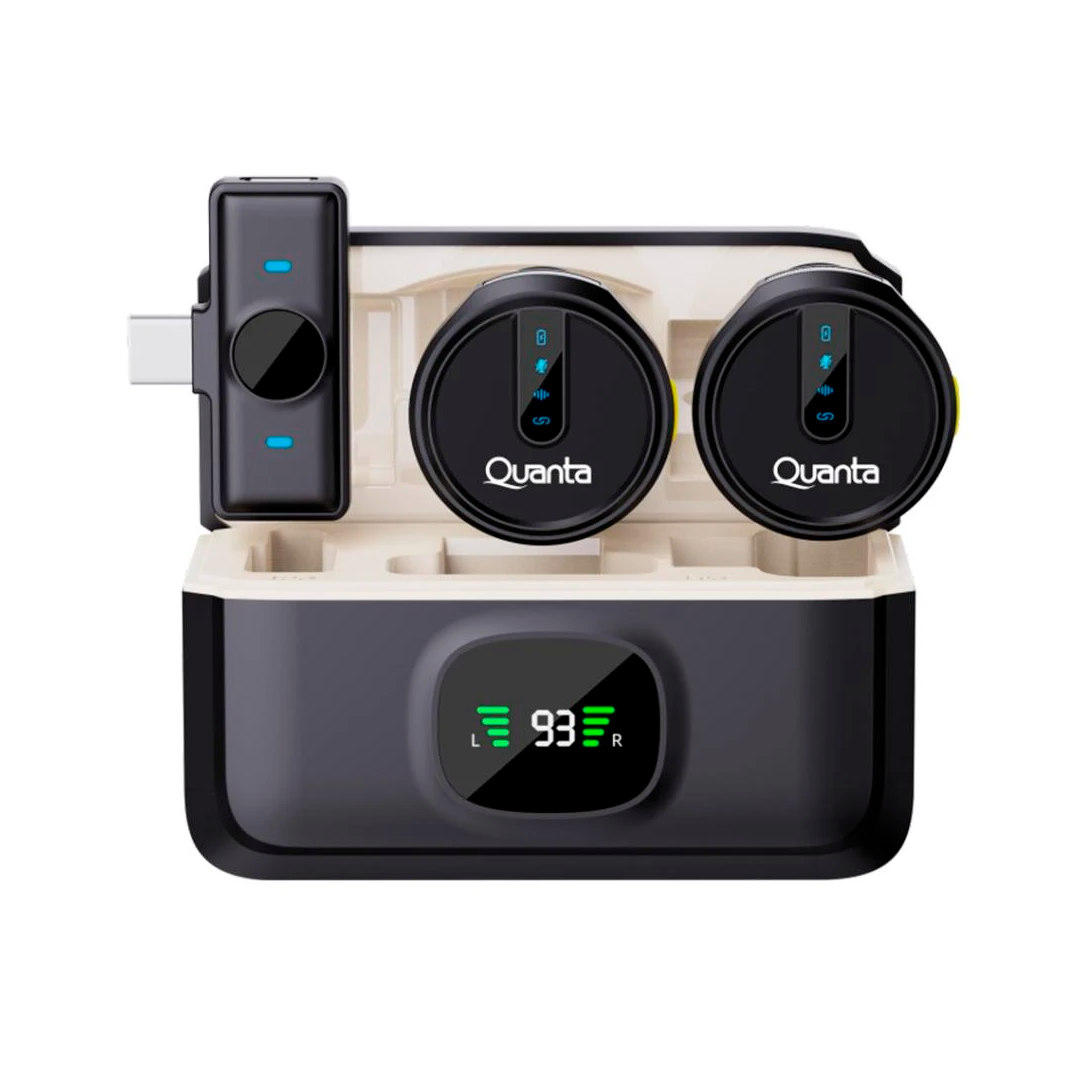O Microfone de Lapela Wireless Quanta QTMDM30 2MIC Preto entrega mobilidade e praticidade para gravações, entrevistas ou vídeos diretamente do celular ou câmera. Discreto e fácil de usar, ele proporciona captação clara e liberdade de movimentos sem fios.