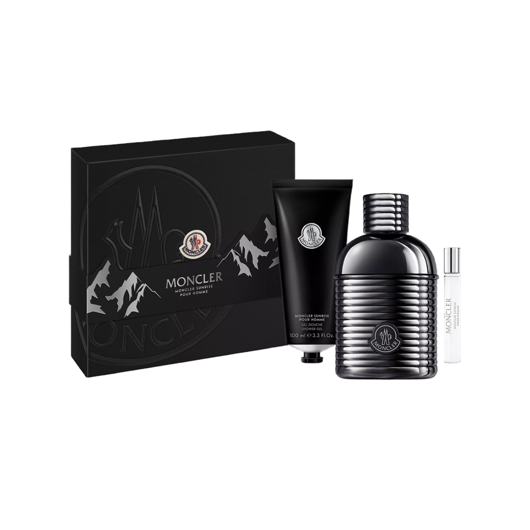 Moncler Sunrise é inspirado no frescor das montanhas e na energia da primeira luz do dia. A fragrância combina notas aromáticas, frescas e amadeiradas, criando uma assinatura masculina marcante, ideal para homens que apreciam elegância e vitalidade. O kit oferece praticidade e uma experiência completa com a marca.