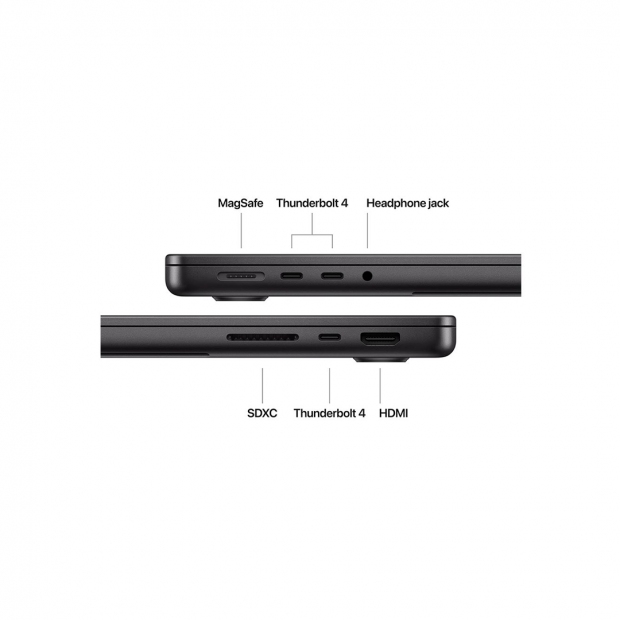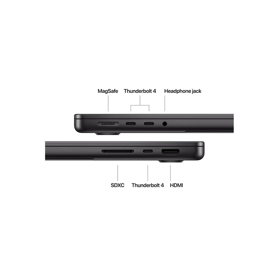 Conectividade versátil - múltiplas portas modernas, incluindo HDMI, USB-C, leitor de cartão SD e carregamento via MagSafe.