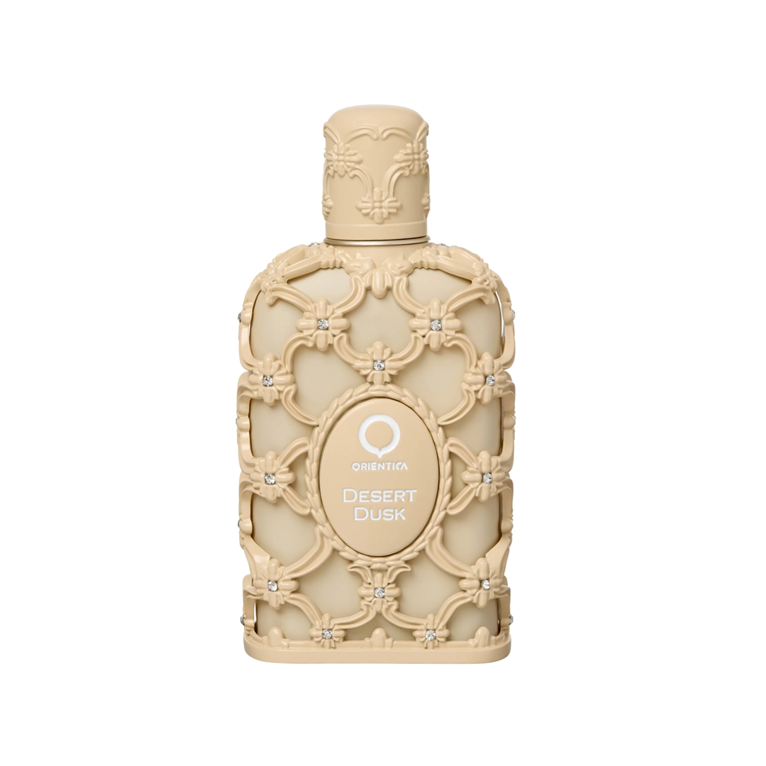 A marca Orientica Perfumes, reconhecida por suas criações luxuosas e inspiradas na perfumaria árabe, desenvolveu o Desert Dusk como parte da sua Luxury Collection, uma linha que celebra o esplendor e o mistério do Oriente Médio. Inspirado no pôr do sol sobre as dunas do deserto, o perfume combina riqueza, calor e sensualidade, refletindo o espírito da mulher confiante e sofisticada. Seu frasco, de design elegante e dourado, reforça o conceito de exclusividade e requinte.