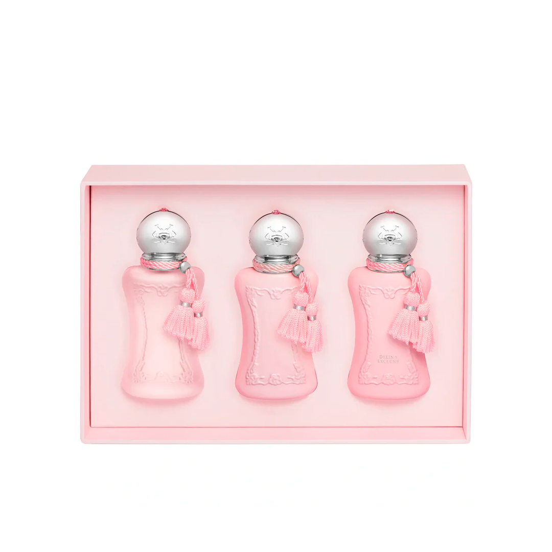 Parfums de Marly Delina foi criado com inspiração na feminilidade moderna, combinando frescor frutado, notas florais elegantes e fundo delicadamente amadeirado. A fragrância transmite leveza, sofisticação e charme, simbolizando mulheres confiantes, elegantes e que apreciam uma assinatura olfativa refinada. O conceito do kit é proporcionar versatilidade e praticidade, permitindo que cada fragrância seja explorada em diferentes momentos do dia ou ocasiões especiais.