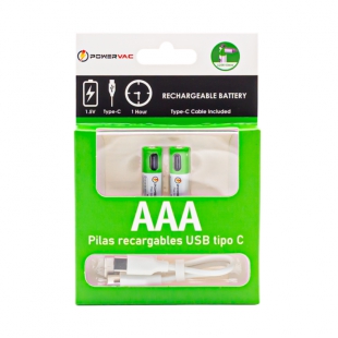 PILHA POWERVAC RECARREGAVEL AAA 2PEÇAS USBC-C 1.5V 750MWH