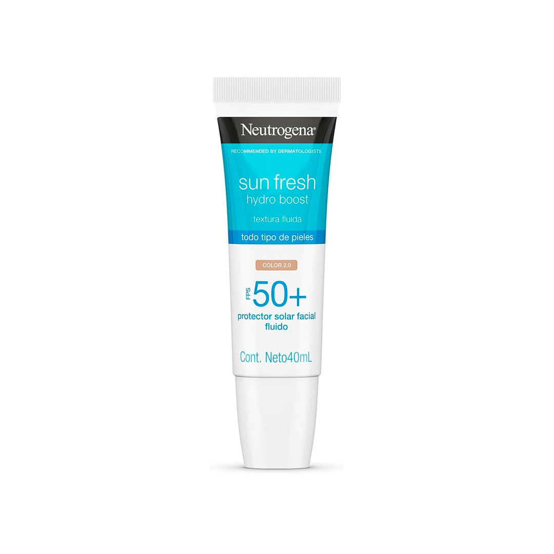 O Neutrogena Sun Fresh Hydro Boost Cor 2.0 FPS50+ 40ml oferece alta proteção contra raios UVA e UVB, luz visível e poluição. Sua fórmula com ácido hialurônico proporciona hidratação profunda por até 12 horas, enquanto a cor 2.0 ajuda a uniformizar o tom da pele, oferecendo um acabamento natural.