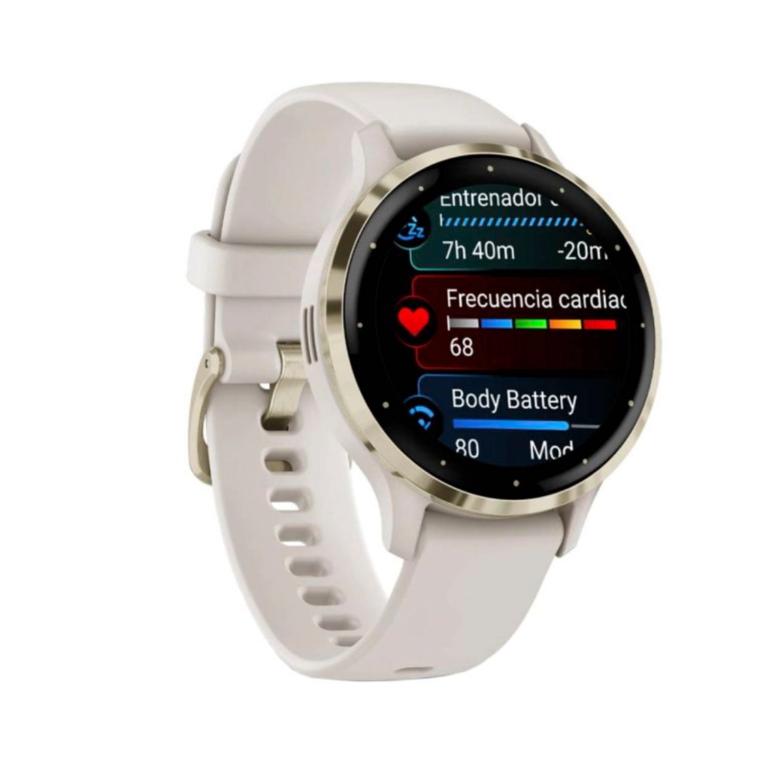 O smartwatch Garmin Venu 3S 41 mm (Bezel Soft Gold / Ivory) combina design elegante com tecnologia avançada de saúde e fitness, proporcionando monitoramento completo do corpo, autonomia prolongada e estilo refinado para o dia‑a‑dia ou atividades esportivas.