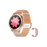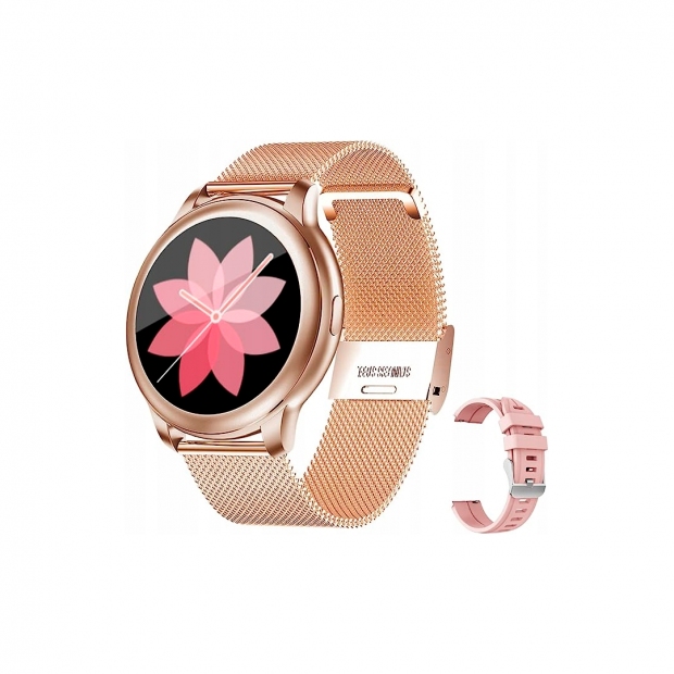Design sofisticado: A caixa dourada e a pulseira combinam elegância e modernidade.