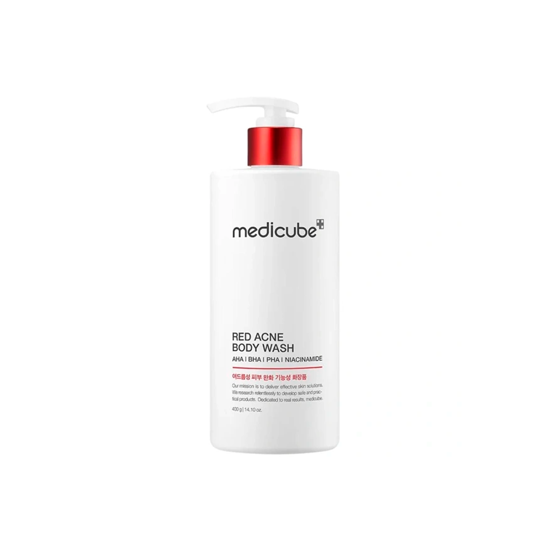 O Medicube Red Acne Body Wash é um sabonete líquido corporal terapêutico, formulado especificamente para combater e prevenir a acne no corpo ("bacne", "chestne"). Seu diferencial é a fórmula funcional sul-coreana com Ácido Salicílico (BHA) e Niacinamida, que esfolia suavemente, desobstrui os poros, controla o excesso de sebo e acalma a pele irritada, deixando-a mais lisa e clara.