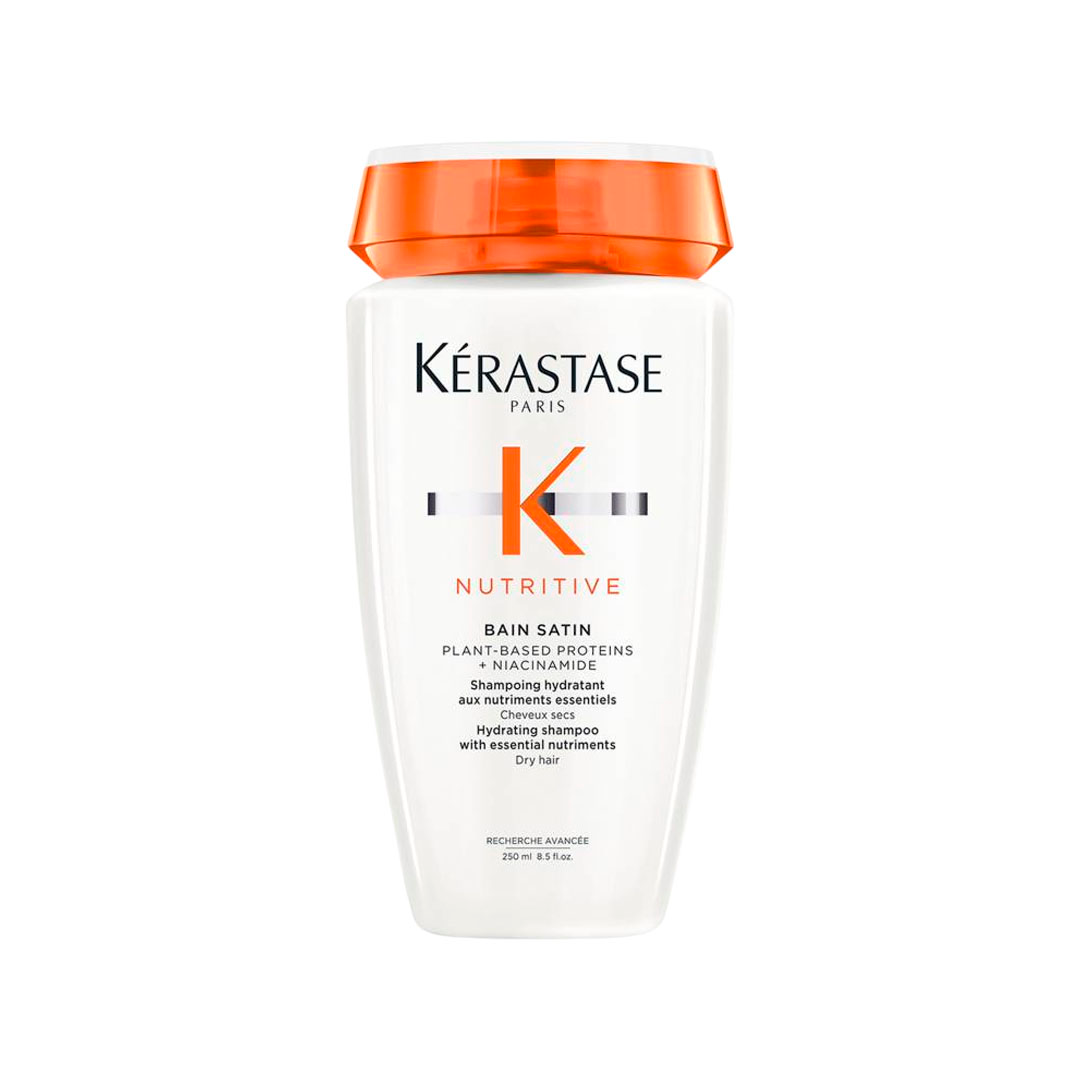 A linha Nutritive da Kérastase foi formulada para tratar cabelos secos ou sensibilizados através de nutrição profunda. O Bain Satin representa a versão para cabelo fino a médio, com foco em hidratação leve, nutrição e condicionamento. Usa proteínas vegetais e niacinamida como ingredientes chave para reforçar a fibra capilar.