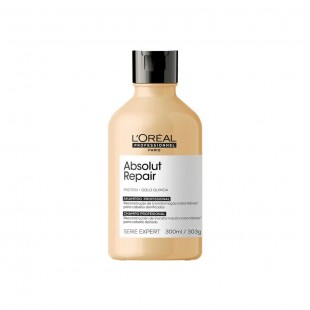 O Shampoo Absolut Repair Gold Quinoa + Protein da L'Oréal Professionnel é uma fórmula de tratamento premium projetada para cabelos danificados. Ele repara profundamente, devolve brilho e maciez aos fios fragilizados, sem deixá-los pesados. Ideal para quem busca reconstrução visível e proteção contra novos danos.
