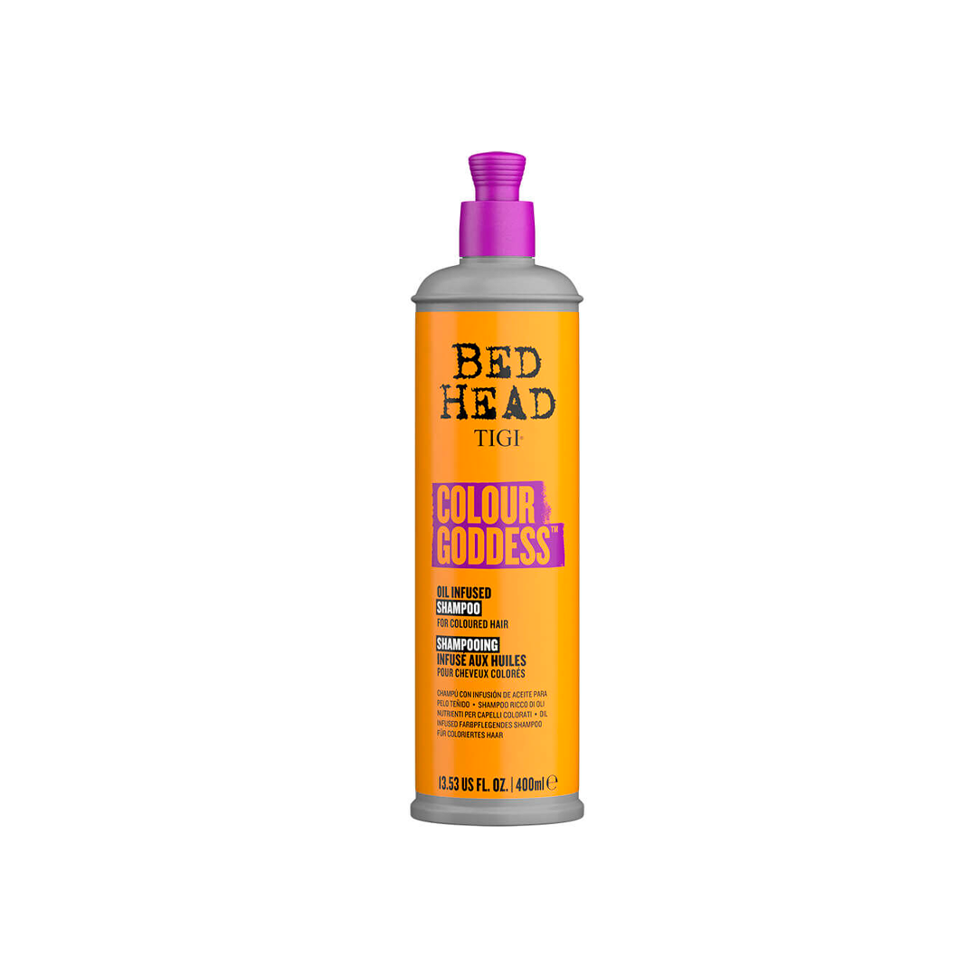 O shampoo TIGI Bed Head Colour Goddess 400 ml foi desenvolvido especialmente para cabelos tingidos em tons castanhos, vermelhos ou escuros. A fórmula ajuda a manter a cor vibrante, melhora o brilho dos fios e reduz a quebra.