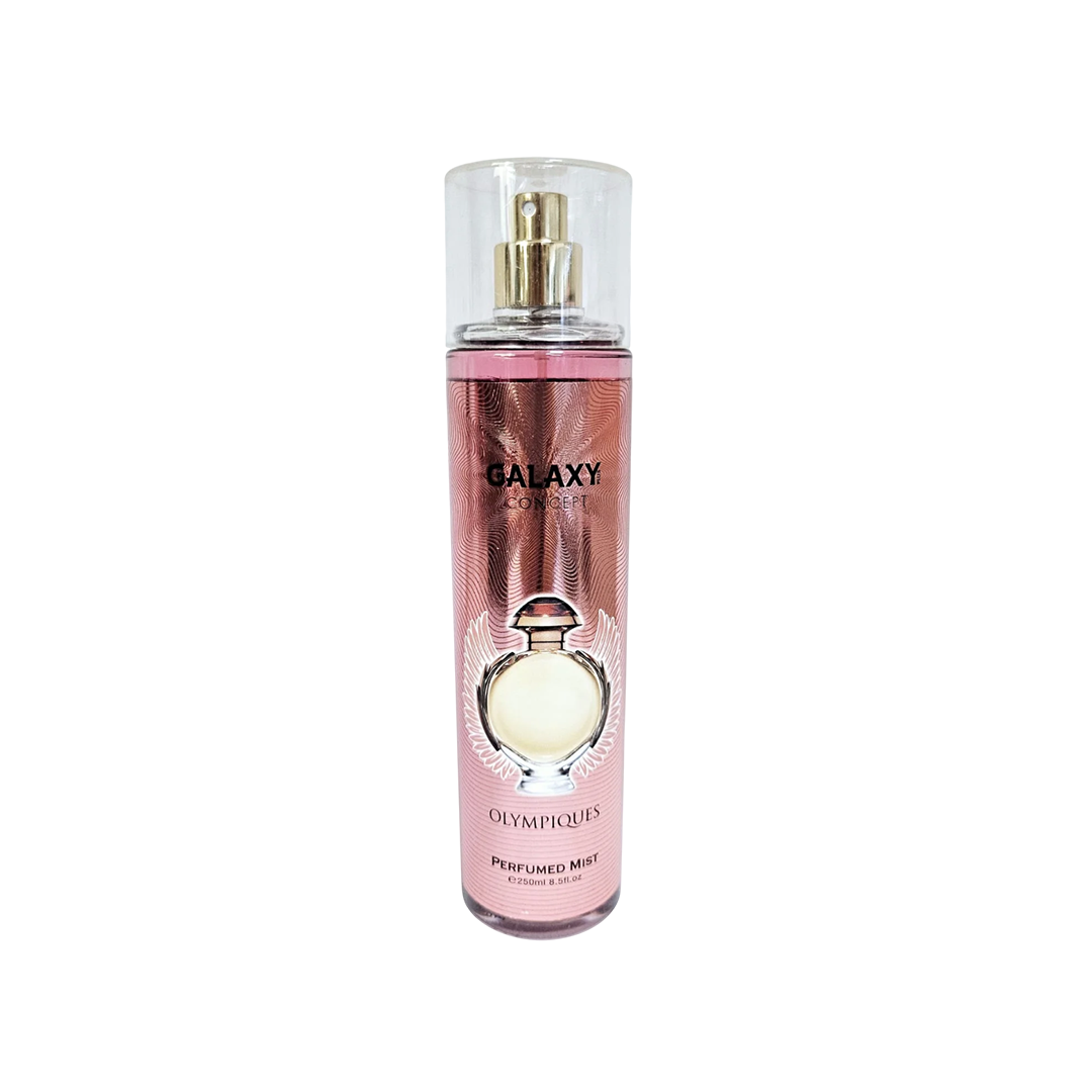 O body splash Galaxy Concept Olympiques 250 ml é uma fragrância corporal feminina com perfil sofisticado, inspirada em aromas de luxo, que combina frescor, elegância e presença marcante para quem busca uma assinatura olfativa acessível.
