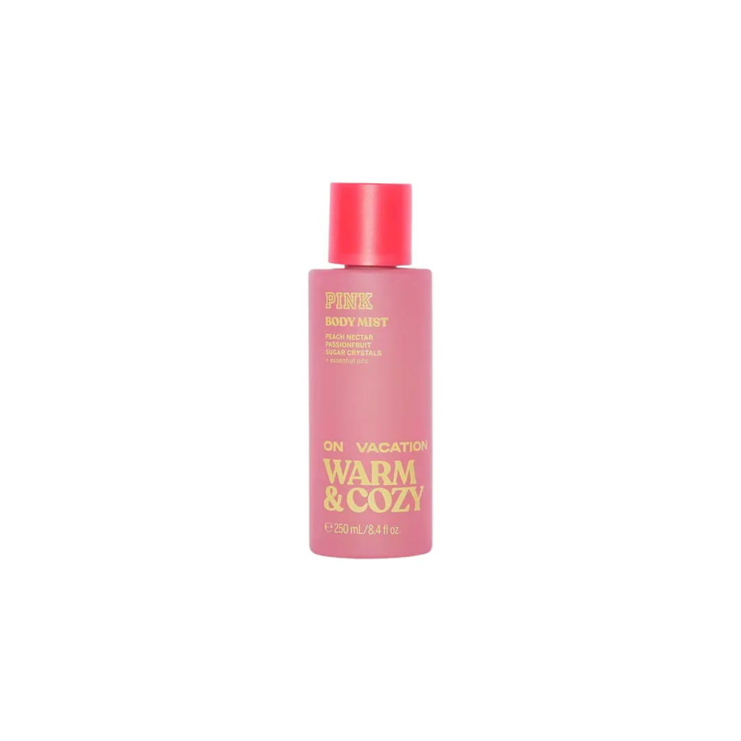 O Splash Victoria’s Secret Pink On Vacation Warm & Cozy 250ml é uma fragrância envolvente e tropical, que combina o toque doce e aconchegante da baunilha com notas florais e um leve toque de coco. Inspirado na sensação de estar de férias sob o sol, traz uma perfumação leve e agradável, perfeita para o dia a dia, deixando a pele com um aroma suave, acolhedor e duradouro.