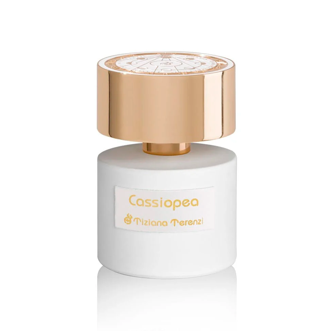 O perfume Tiziana Terenzi Cassiopea (Extrait de Parfum, 100 ml) é uma fragrância unissex de luxo, que combina uma abertura frutada vibrante (maracujá, cassis, limão) com um coração floral delicado e uma base cremosa de madeira de sândalo, fava-tonka e almíscar.