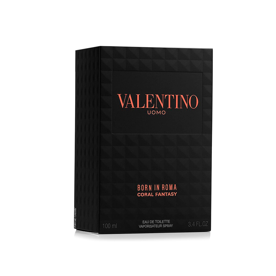O perfume Valentino Uomo Born In Roma Coral Fantasy 100 ml EDT é uma fragrância masculina vibrante e sofisticada, que combina notas frutadas de maçã vermelha e bergamota com um coração aromático e uma base quente de tabaco e patchouli — ideal para quem busca distinção com presença.